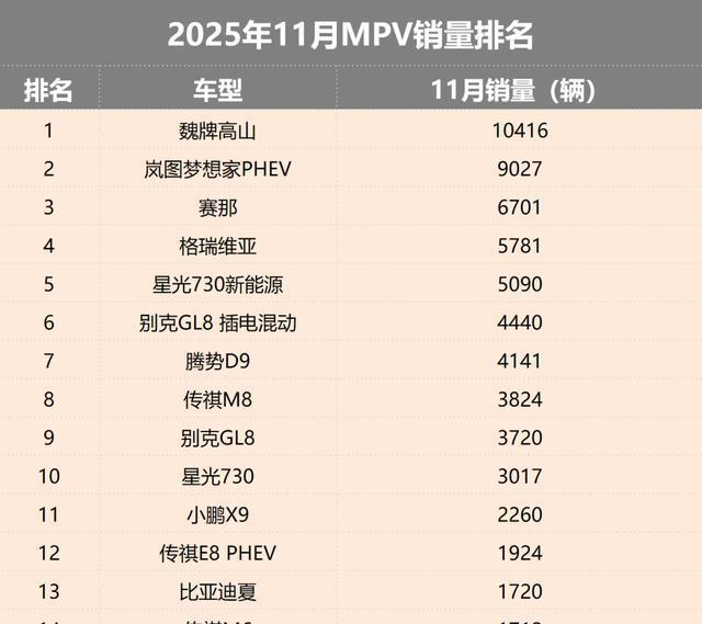 11月MPV销量丨仅峻岭破万辆,星光730势头猛,新能源化成输赢手